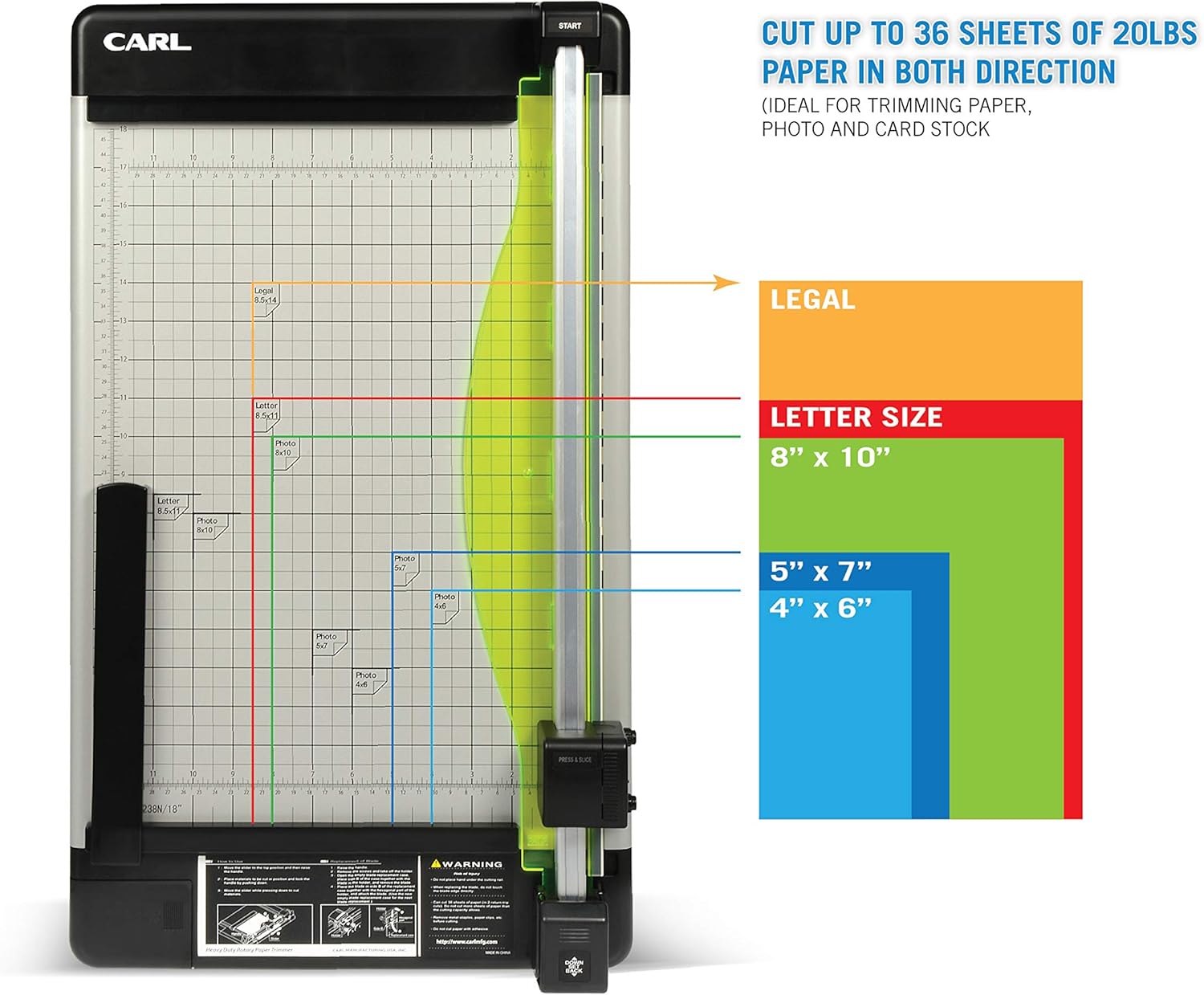 - Cuts up to 36 sheets of standard 20-pound paper.