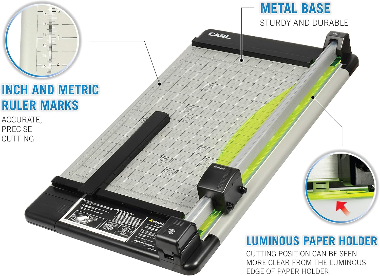 CARL Heavy Duty Rotary Paper Trimmer - 12238, Black/Silver, 18inch