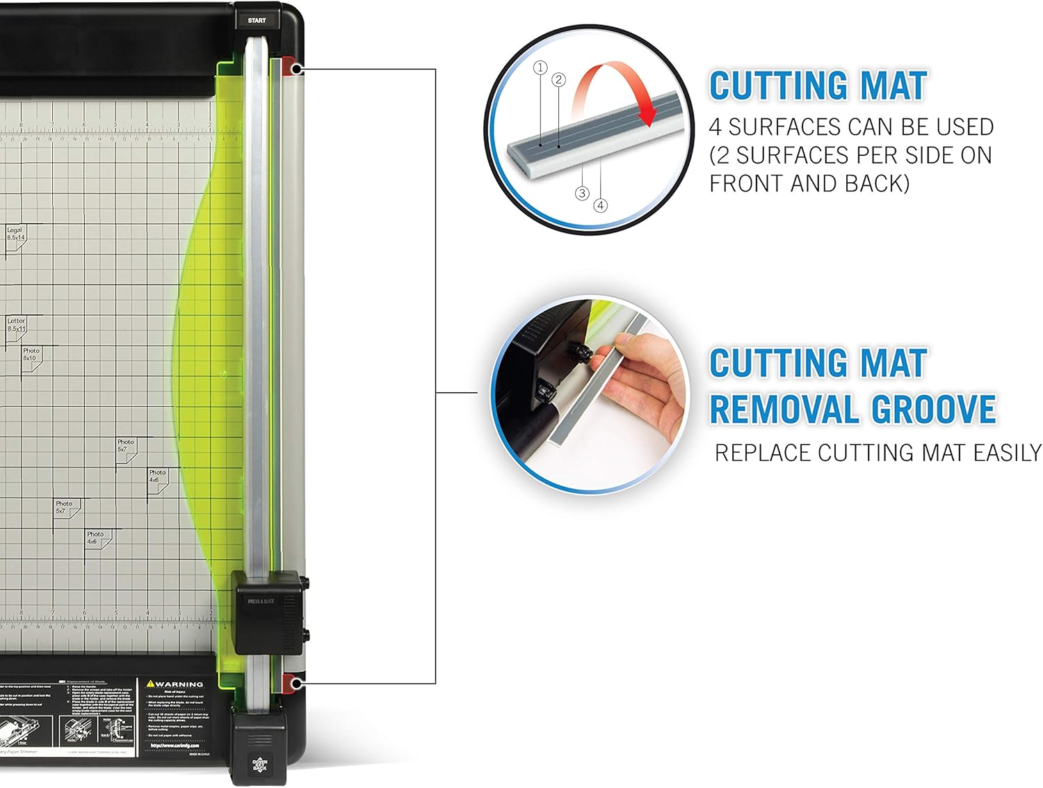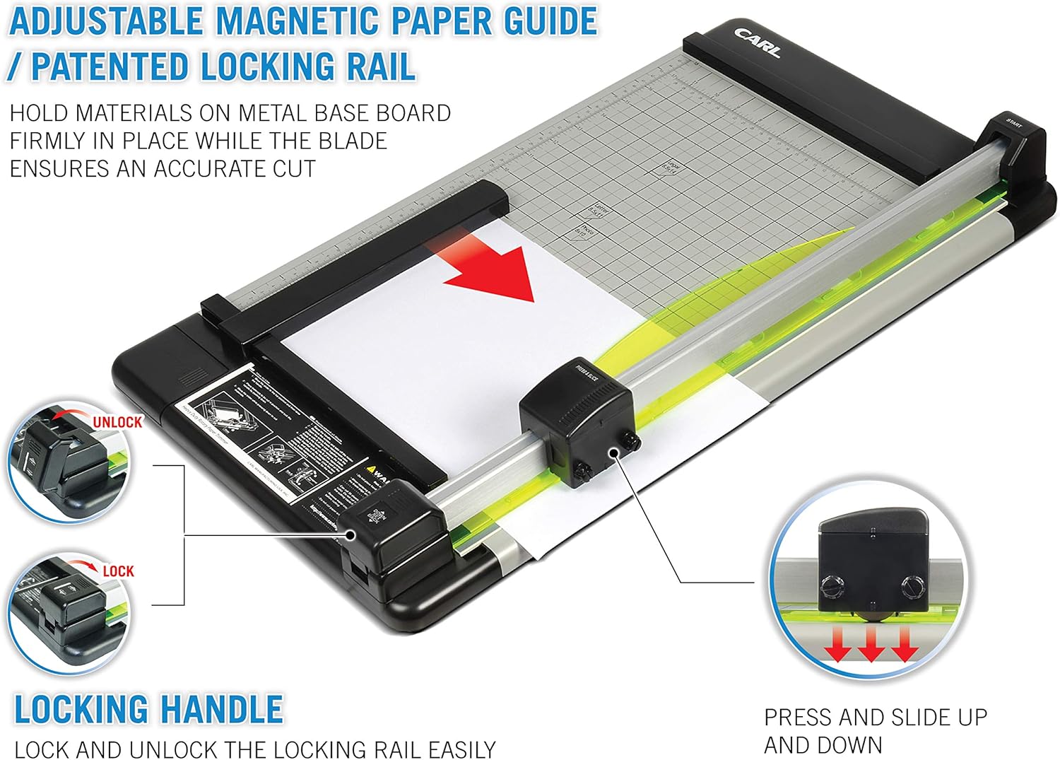- The patented locking rail mechanism hold paper firmly in place while the Premium carbide blade ensures an accurate cut.