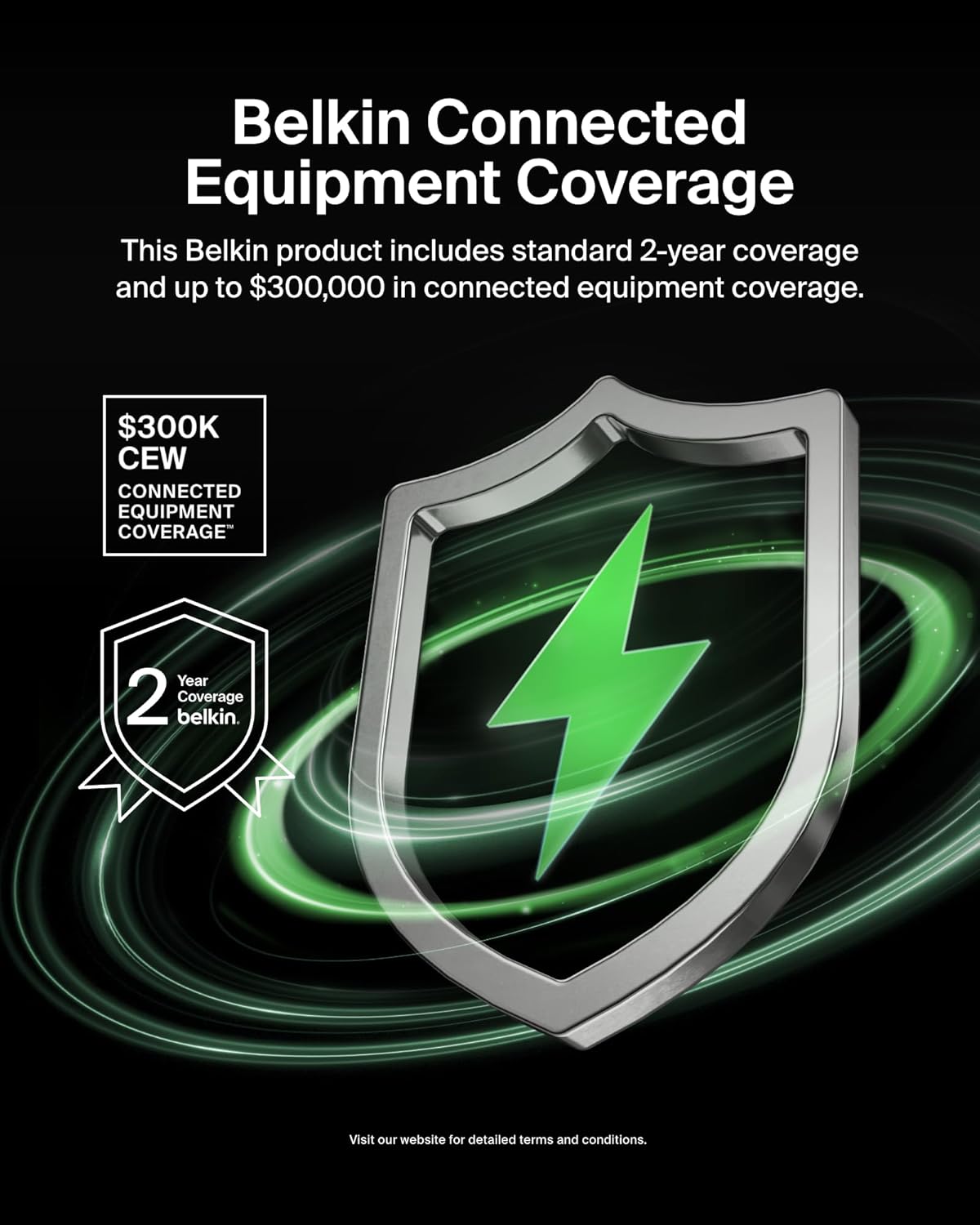 - RELIABLE SURGE PROTECTOR: Secure your electronic devices from overload, short circuit, power spikes, lightning strikes, or fluctuations. Purchase with confidence, backed by a lifetime warranty and protected by Connected Equipment Warranty.