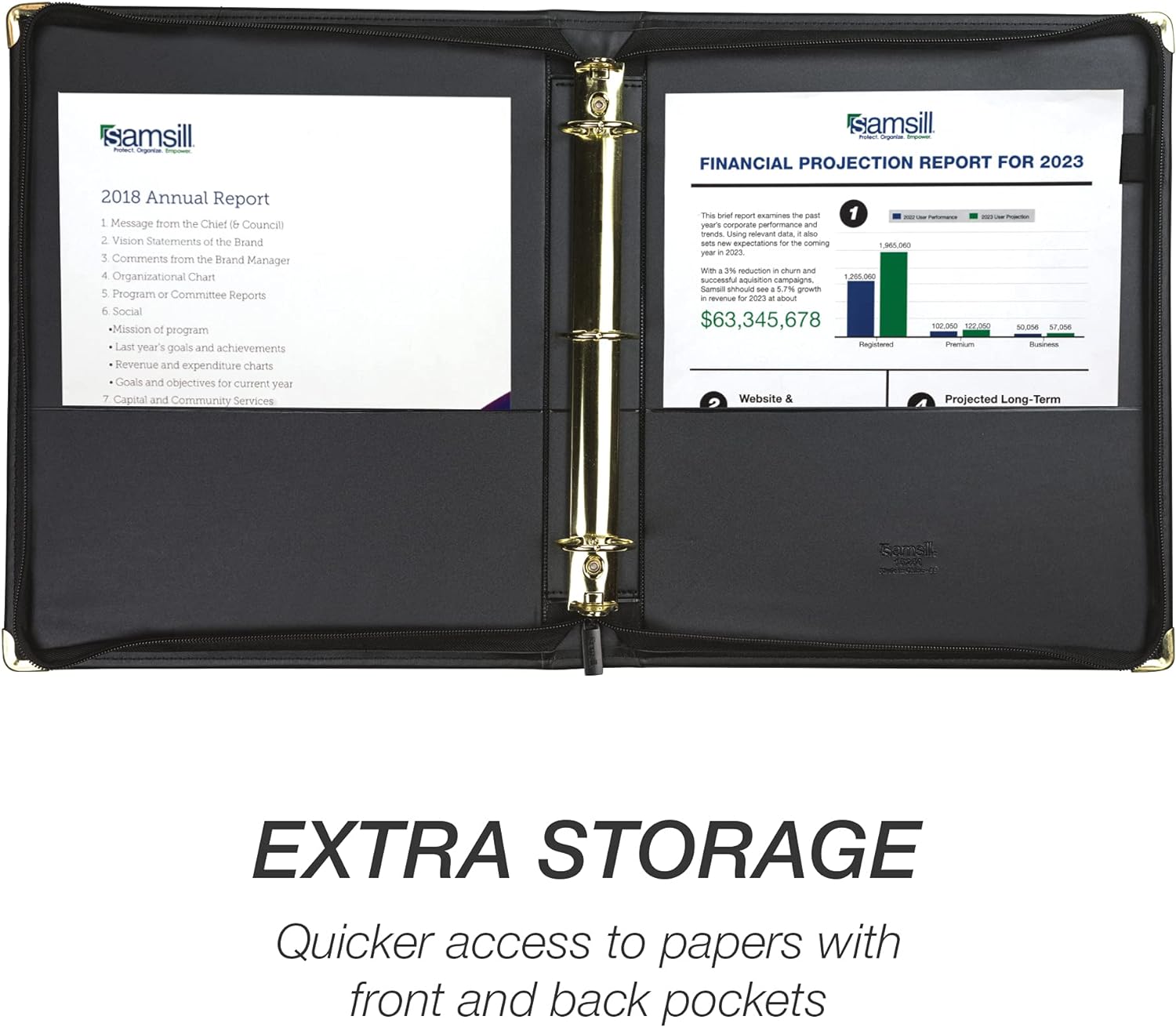 Samsill Classic Collection Leather Binder, Zippered, Executive Presentation Portfolio, 1.5 Inch (Holds 325 Sheets), Brass Round Ring, Black
