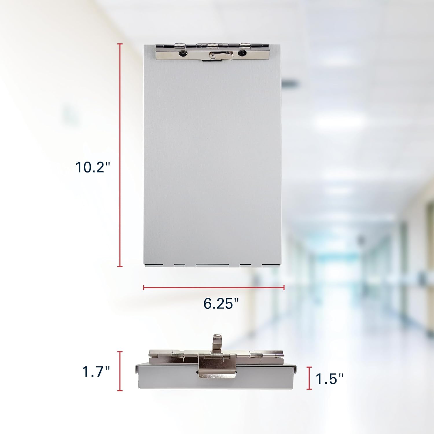- Clipboard measures 10.2 in. x 6.25 in. x 2.75 in. (L x W x H) when laid flat on table; can fit documents and forms up to 6' X 10' (15.24 cm X 25.4 cm)