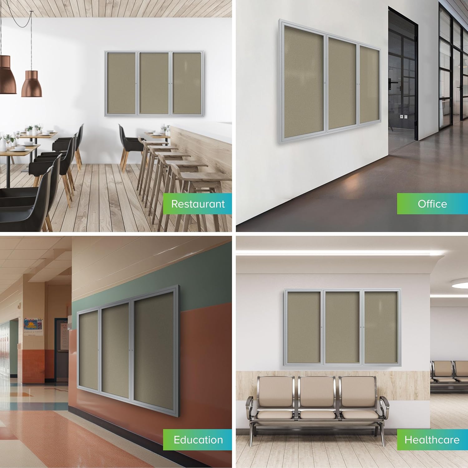 Ghent 48"x96" 3-Door Outdoor Enclosed Vinyl Bulletin Board, Shatter Resistant, with Lock, Satin Aluminum Frame - Caramel (PA34896VX-181), Made in the USA