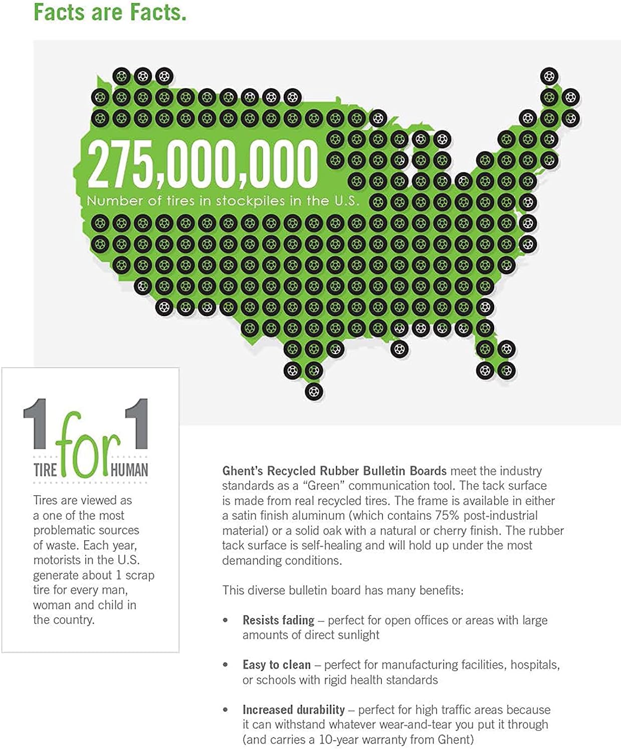 - Go “green” - Manufactured from post-industrial Material: tack surface 90%, aluminum frame 75%.