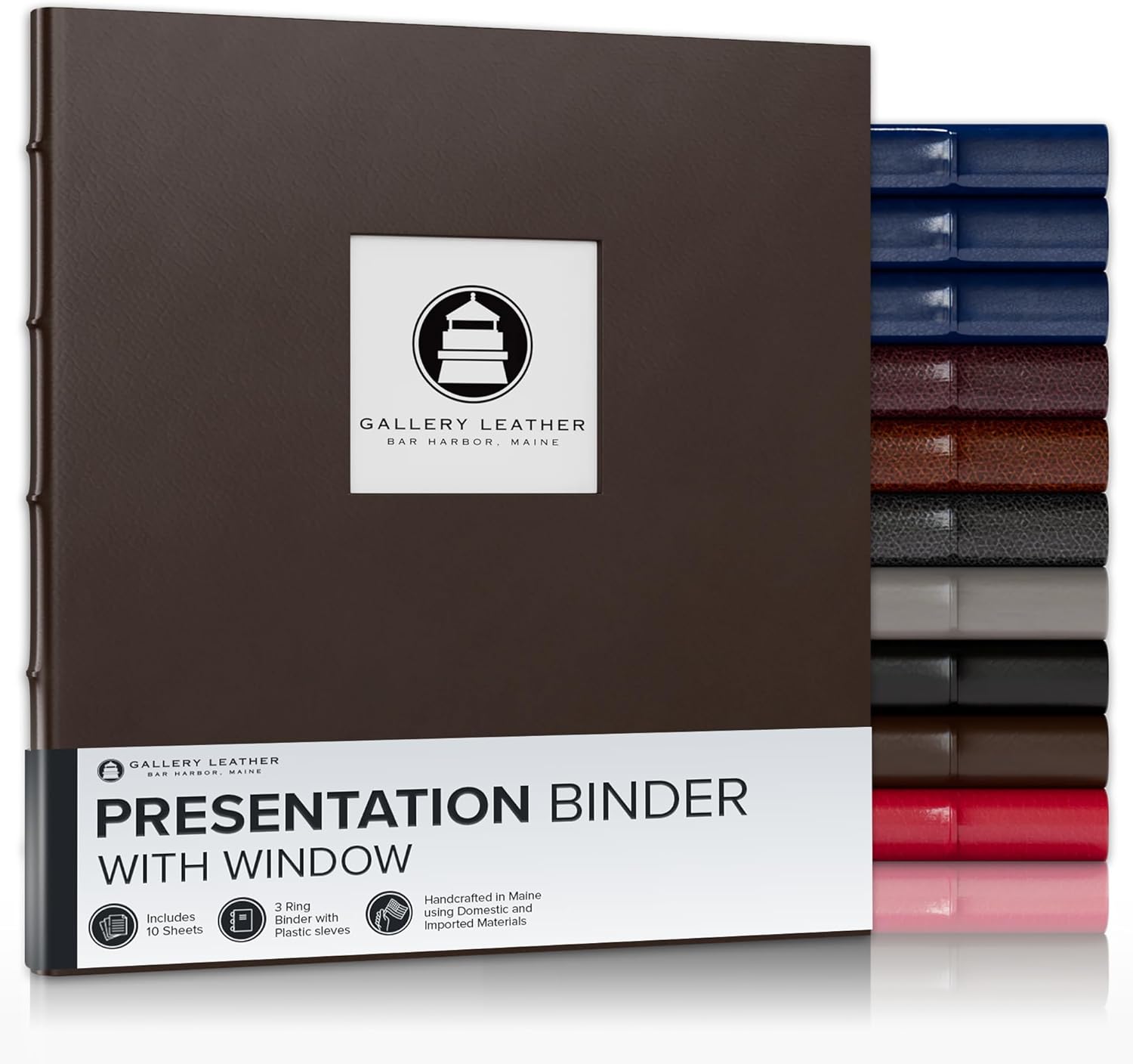 - 📗 𝗟𝗲𝗮𝘁𝗵𝗲𝗿 𝗕𝗶𝗻𝗱𝗲𝗿: Packed with professionalism and durability, our Gallery Leather binder features a bonded leather construction, complete with protector sheets and a hubbed spine. Choose from a range of colors and texture options to suit your style. Ideal for business professionals, military personnel, and enthusiasts alike