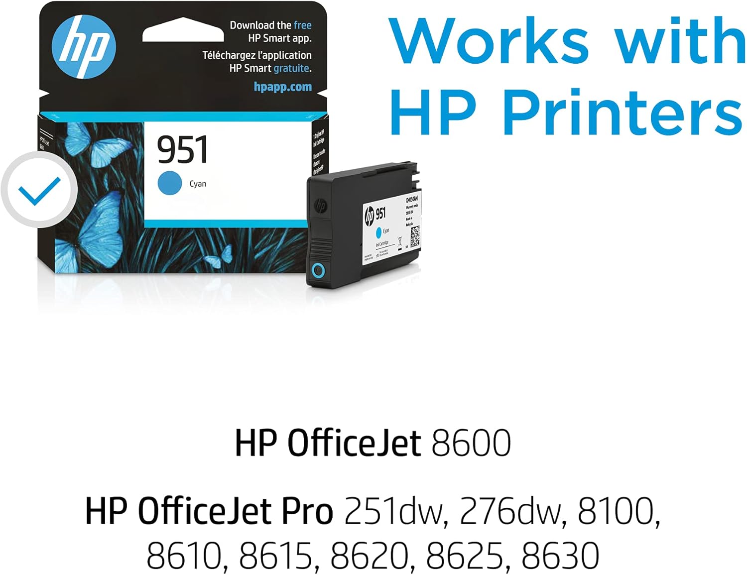 HP 951 Cyan Ink Cartridge for HP Printers | Works with Printer Series: OfficeJet 8600, Pro 251dw, 276dw, 8100, 8610, 8620, 8630 | Eligible for Instant Ink | CN050AN