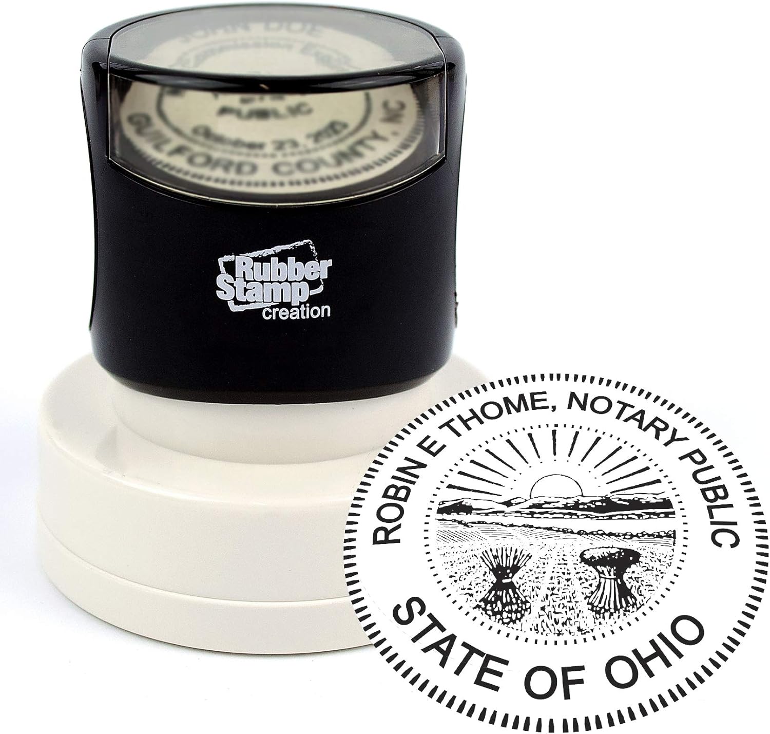 - Pre-inked notary stamp as seen in image (Imprint Size: 1-5/8" Diameter), personalized for you