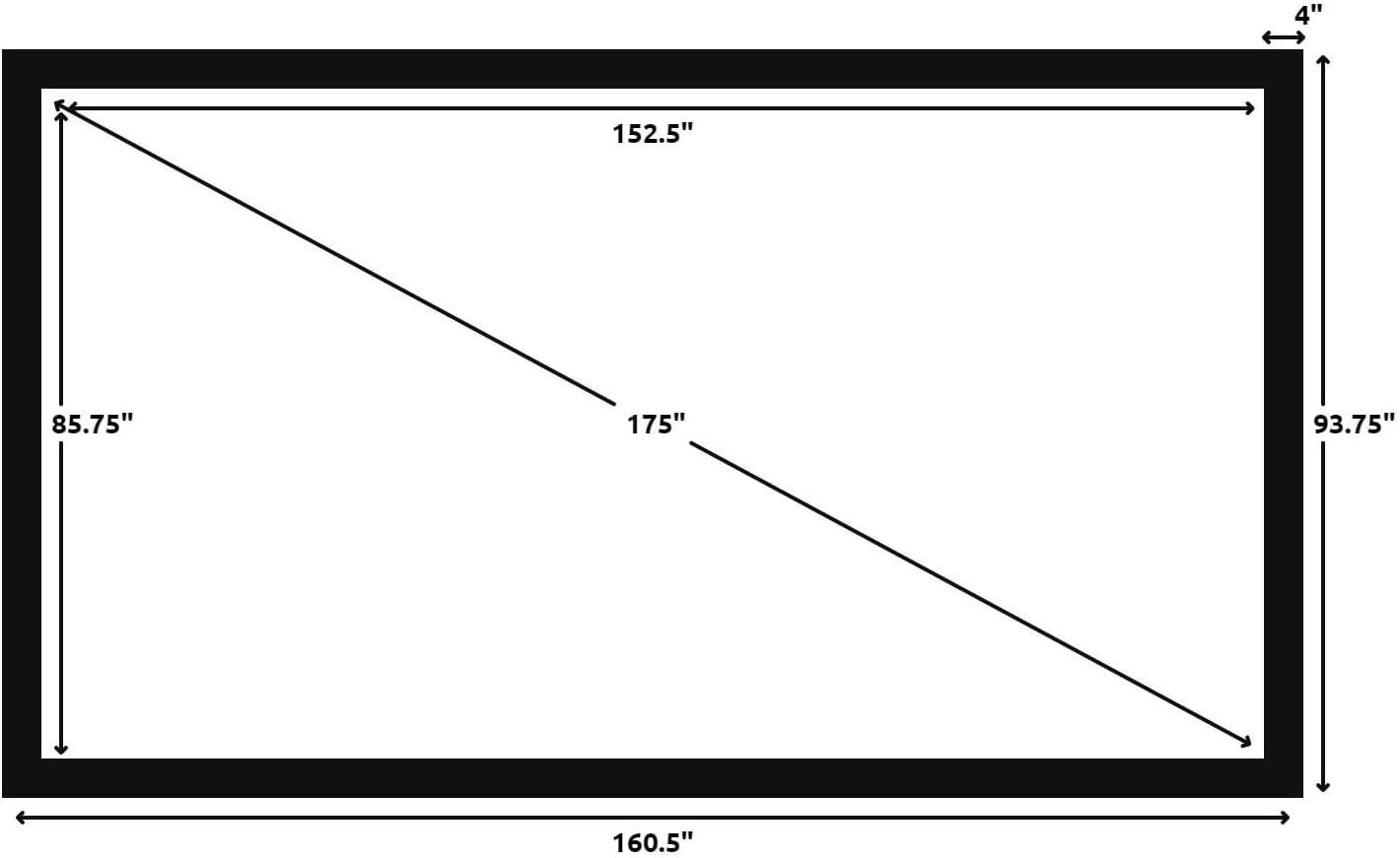 - Wall Mounted Fixed Frame Projection Screen (Overall Size 93.75" Tall x 160.5" Wide) (Viewing Area 175" Diagonal x 85.75" Tall x 152.5" Wide) No option for Legs or Stands with this product. Recommended for projectors with Native 16:9 Resolution