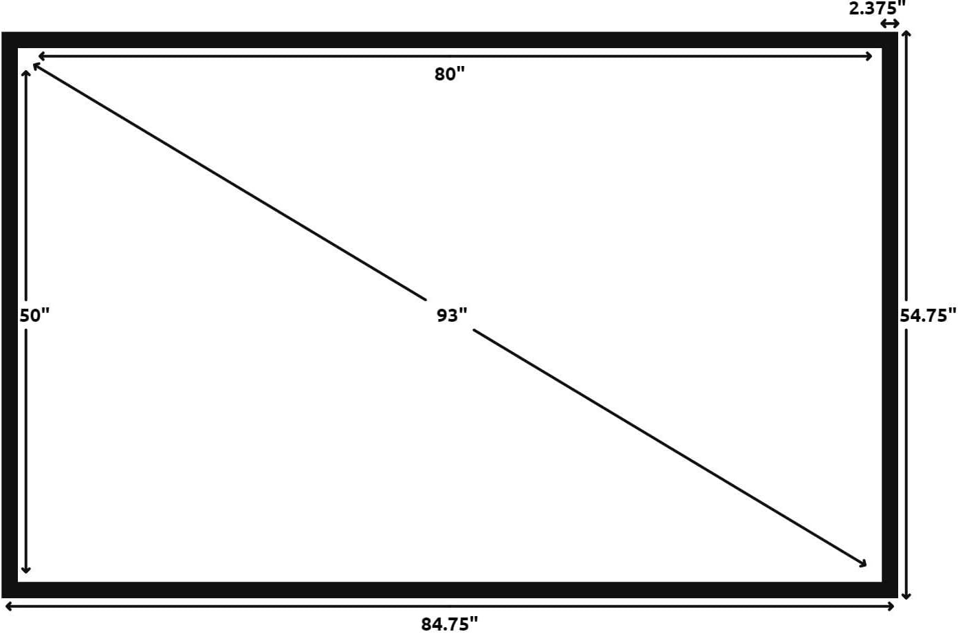 - Wall Mounted Fixed Frame Projection Screen (Overall Size 54.75" Tall x 84.75" Wide) (Viewing Area 93" Diagonal x 50" Tall x 80" Wide) No option for Legs or Stands with this product. Recommended for projectors with Native 16:10 Resolution