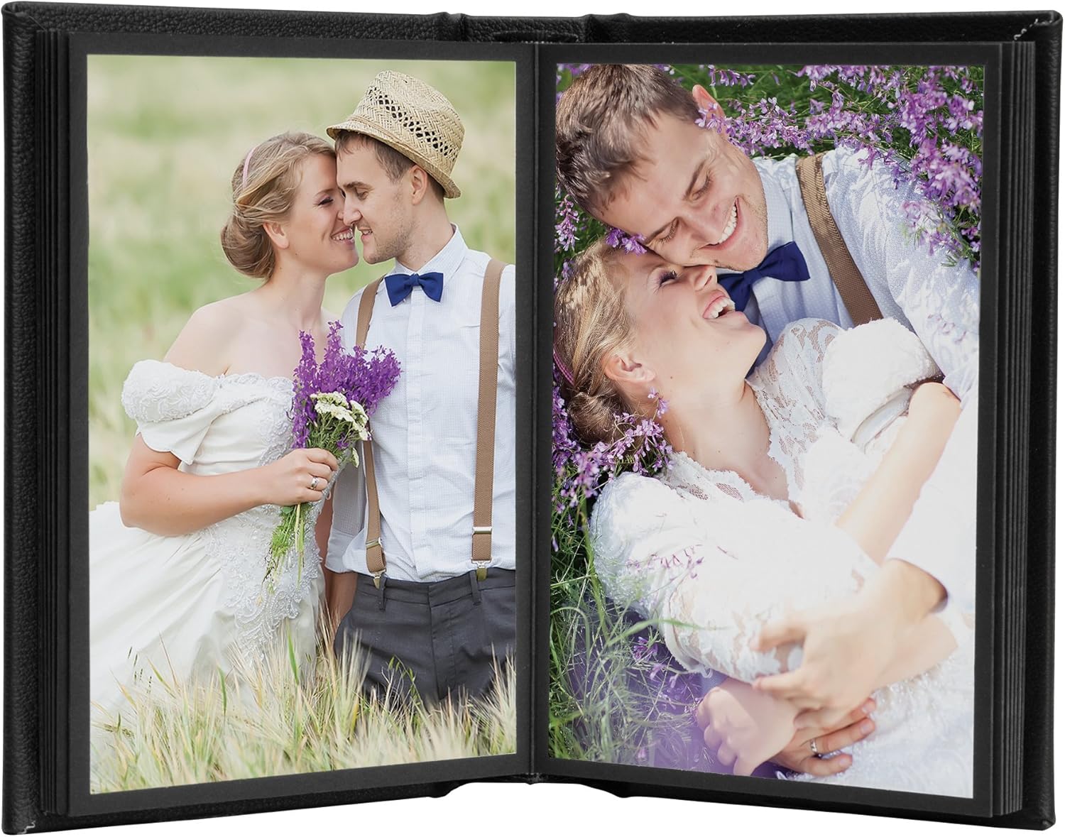 - Albums are black in color, can hold 20 4” x 6” photos, and feature easy peel and stick pages to showcase your favorite photos or portraits from any special event