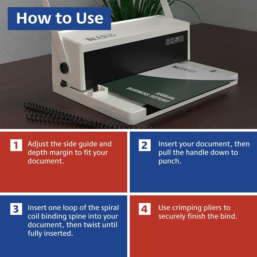 TruBind Manual Coil Binding Machine with Adjustable Side Margin | 20 Sheet Punch Capacity | Bind up to 440 Sheets with 4:1 Pitch | 2-Year Warranty | Heavy-Duty Coil Crimping Pliers Included