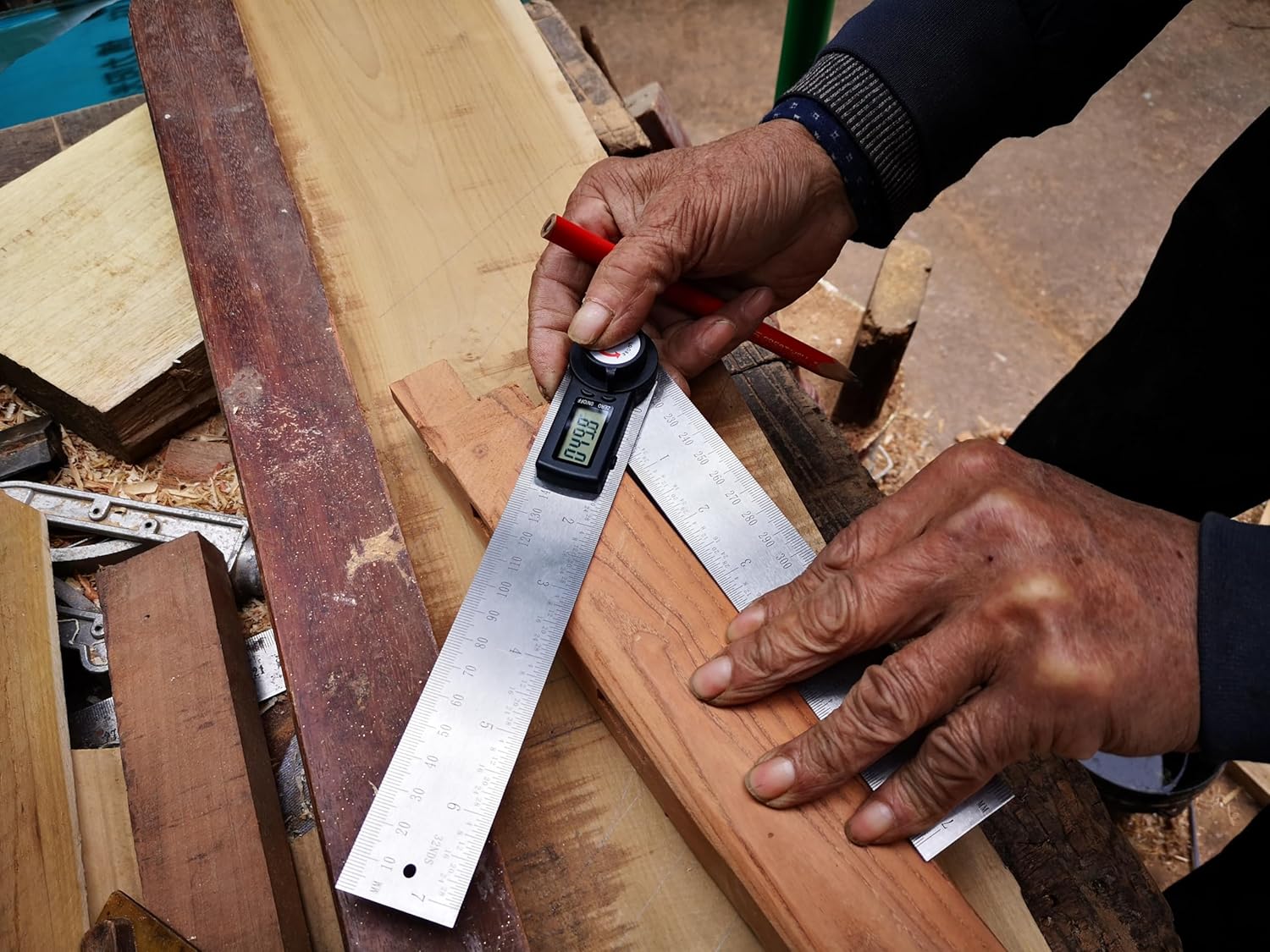 - HIGH ACCURACY -- Accuracy of this protractor is Β±0.3 degree. It is a good choice for most projects like woodworking, crown molding and daily use. Folded length: about 7.5 inch/220mm.Total length 400mm.
