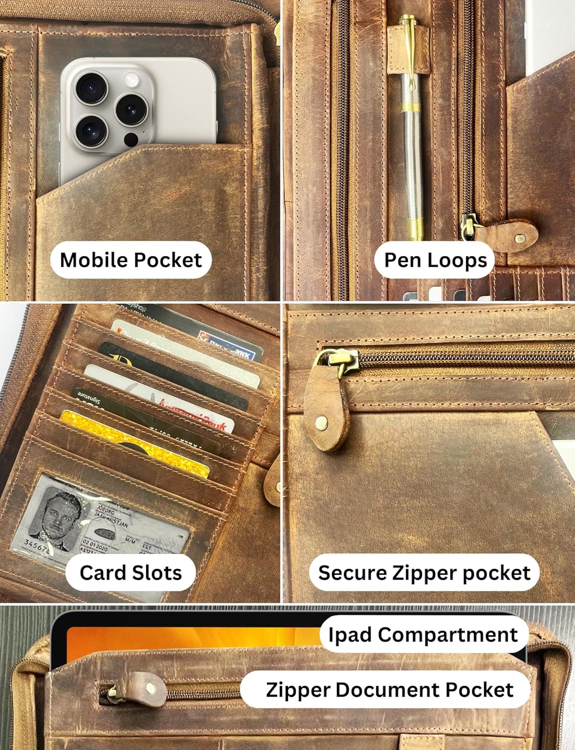 - β DURABLE CONSTRUCTION AND EASY MAINTENANCE: It is equipped with thick hardbound cover and strong stitching with best quality material to ensure duribility of your leather portfolio. When it gets dirt or stain, wipe it with wet cloth or tissue simply. It looks new again