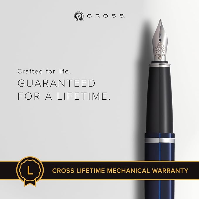 - Cross Calais fountain pen with medium nib comes in Blue Lacquer with Chrome accents