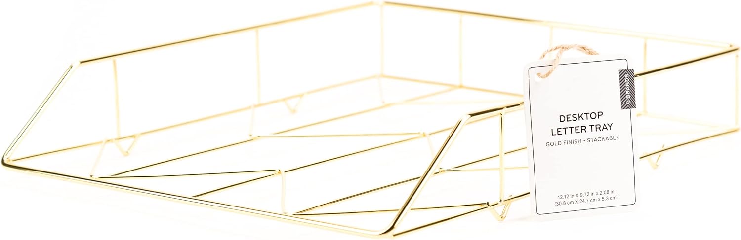 U Brands Desktop Letter Tray, Wire Metal, Gold