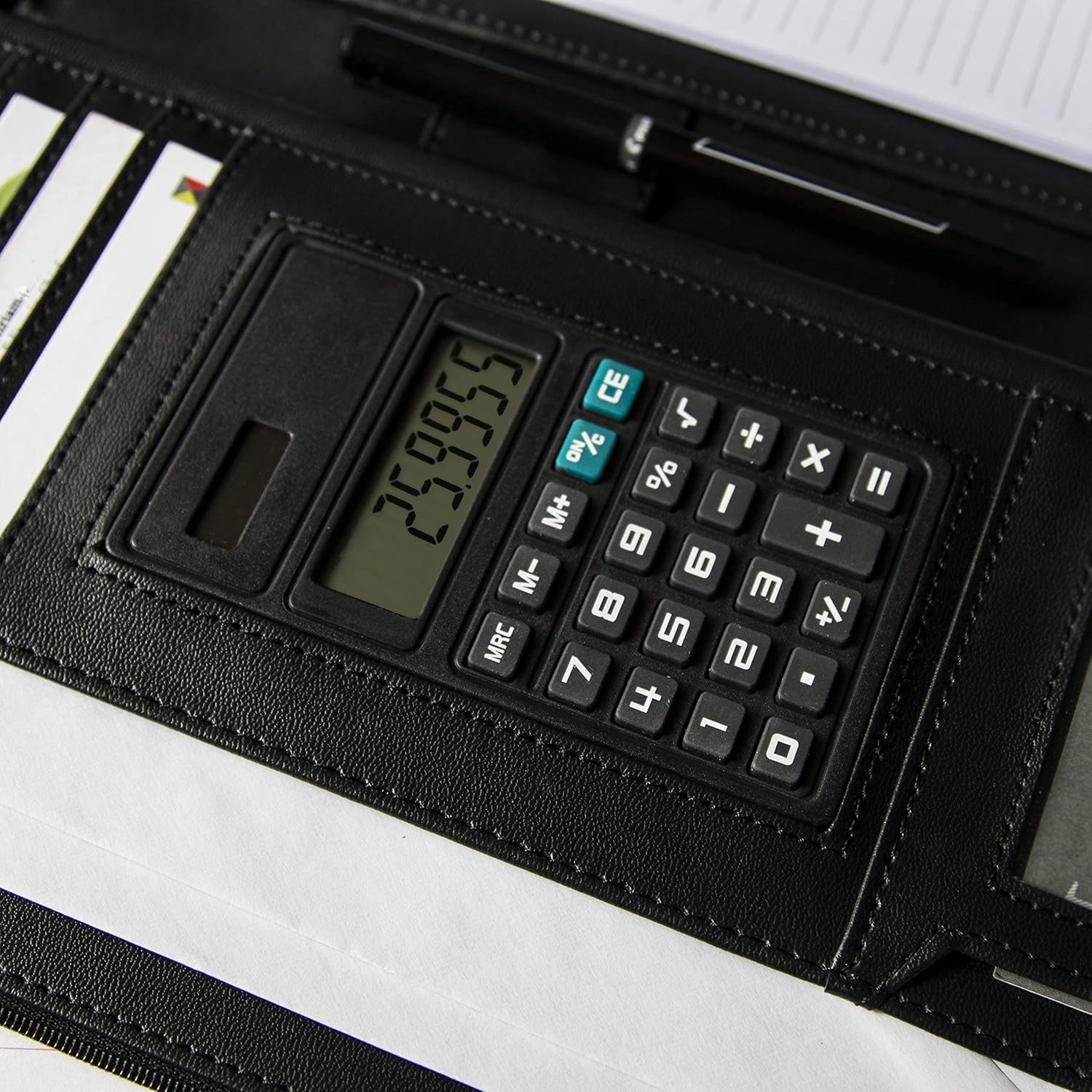 - Still superior, and now upgraded for life’s biggest advancements: Originally crafted to suit the advanced professional, we recently added smart changes to this customized vegan leather portfolio for those returning to pursue their MBA, or interviewing for that next wrung up the ladder; features include solar calculator, full PU leather interior, dual start zipper, and abundant storage so paper never crunches or falls out