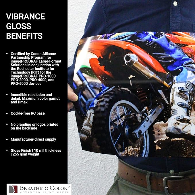 - ✔️ YOUR PHOTOS DESERVE TO LOOK THEIR BEST. You’ve probably spent much of your hard-earned money on your camera, lenses, lighting, tripods, and other high-end digital equipment to get that perfect shot. When it comes to your printing paper, cutting corners is NOT an option!. If you want a premium glossy photo paper that has been made with as much love and passion as you put into your photography, look no further than Breathing Color’s Vibrance Gloss.