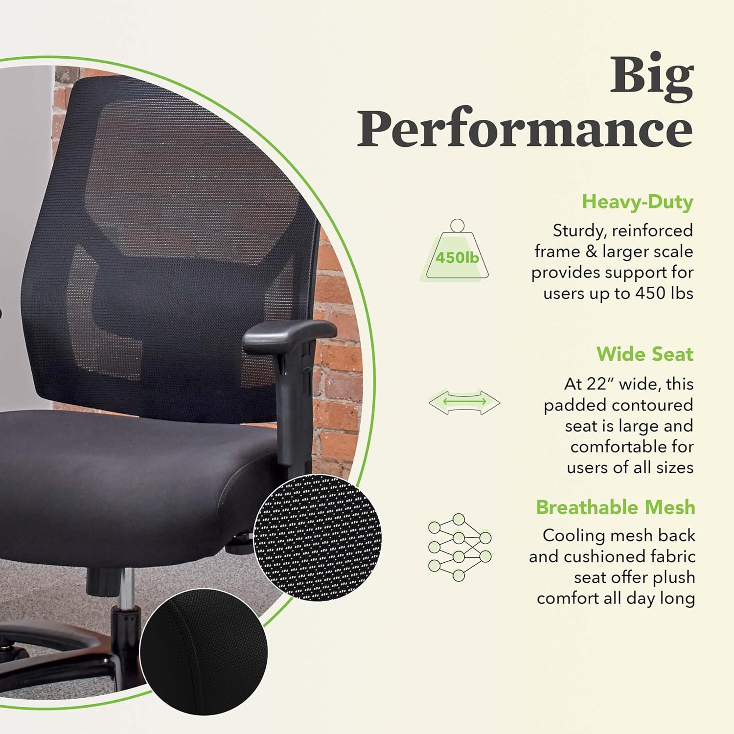 - SUPPORTS UP TO 450 LBS: Our ergonomic office chair big and tall offers reinforced steel frame support up to 450 pounds, ensuring durability and longevity for all users of big and tall office chairs with adjustable arms