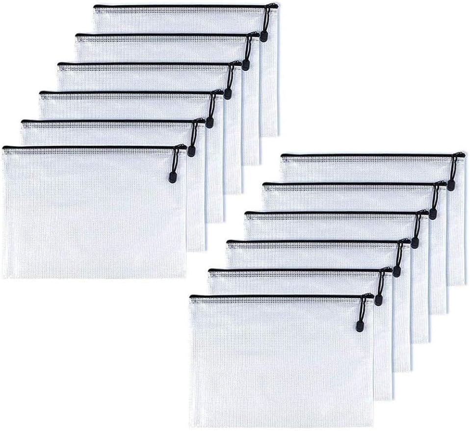 Oaimyy-A6(4.5"x 6.5",12 Pcs),Plastic Mesh Zipper Pouch Document Folders Bag Zip File Folders for School Office Supplies, Travel,Puzzles Games Organizing Storage-Black