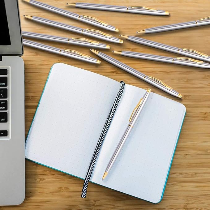 - Comfortable Medium Point Pen: Perfect weight and round barrel for writing comfort, meet all your needs for signing contracts, journaling, or marathon study sessions. These sliver pens are built with metal construction for a long time use