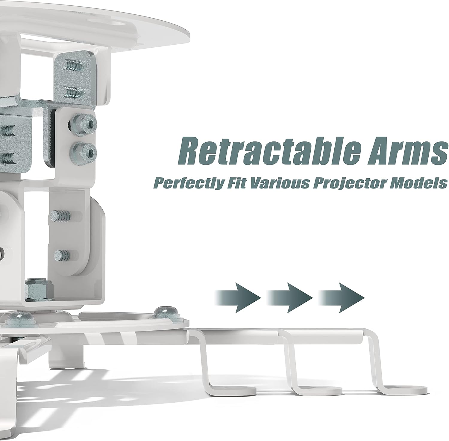 WALI Projector Ceiling Mount, Universal Low Profile Projector Mount with Retractable Arms and Multiple Adjustment Function (PM-002-W), White