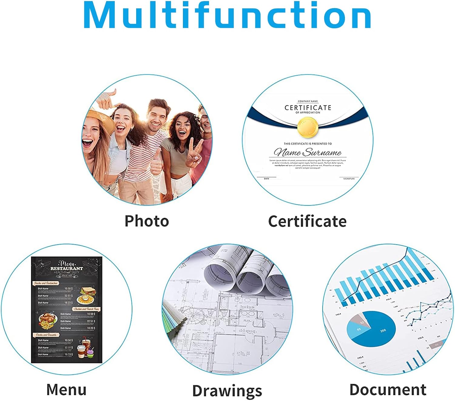 - Thermal pouches compatible with letter-size, business-card-size, and photo-size papers, compatible with all laminator brands.