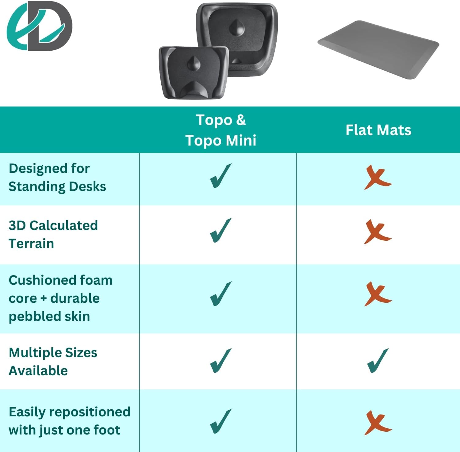 - THE BEST STANDING DESK MATS: Topo is the first anti-fatigue mat designed specifically for standing desks. Topo Mini boasts the same premium comfort mat material and similar next-generation terrain features in a smaller footprint.