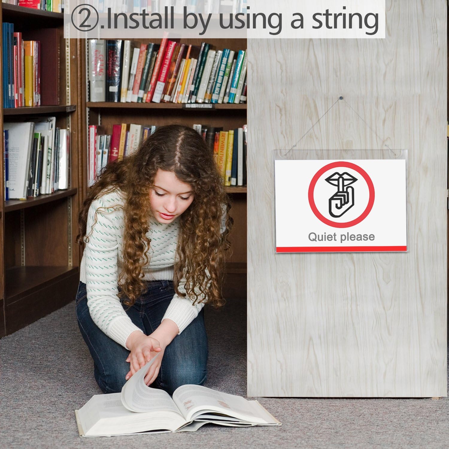 - EASY TO ASSEMBLE- You can install the wall mounted sign holder by using the INCLUDED Screws and Anchors,or hang it through the pre-drilled holes by using a string,or just stick it by using our Free Double Sided Adhesive Strips on wall without drilling.