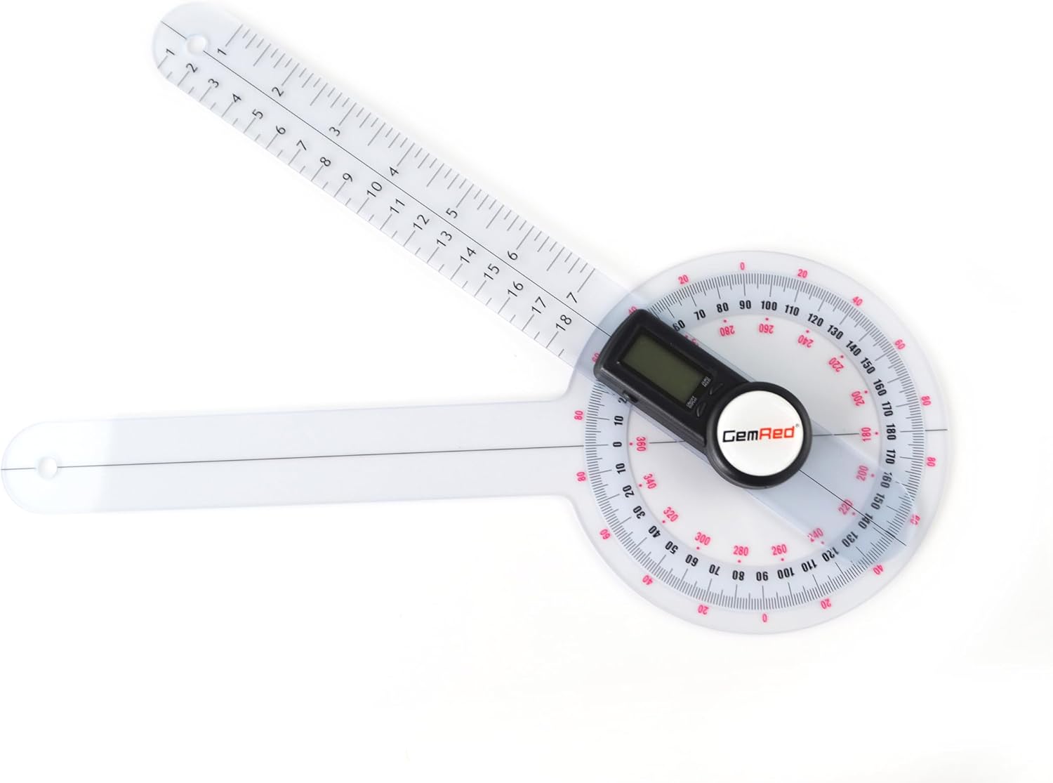 GemRed 12" Digital Goniometer 360 Degree Physical Therapy Plastic Protractor for Joint Range of Motion ROM Measurement