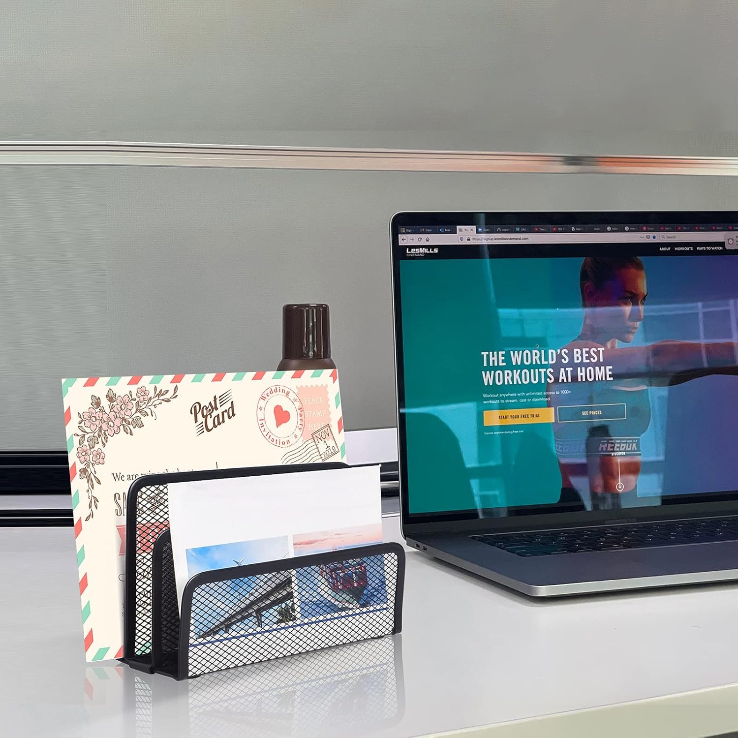 wishacc Desk Mail Organizer Small File Holders Letter Metal Mesh Document/Filing/Folders/Paper Organizer for Desktop