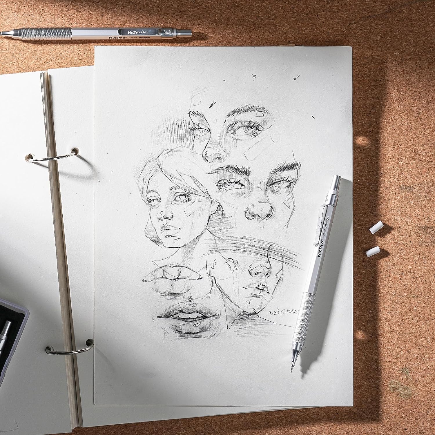 - 【Metal Threaded Anti-skidding Grip】 Nicpro MP1000 pencil adopt fancy hexagon barrel design with metal threaded grip, well balance pencil which bring you comfortable & fatigue-free writing & drafting experience