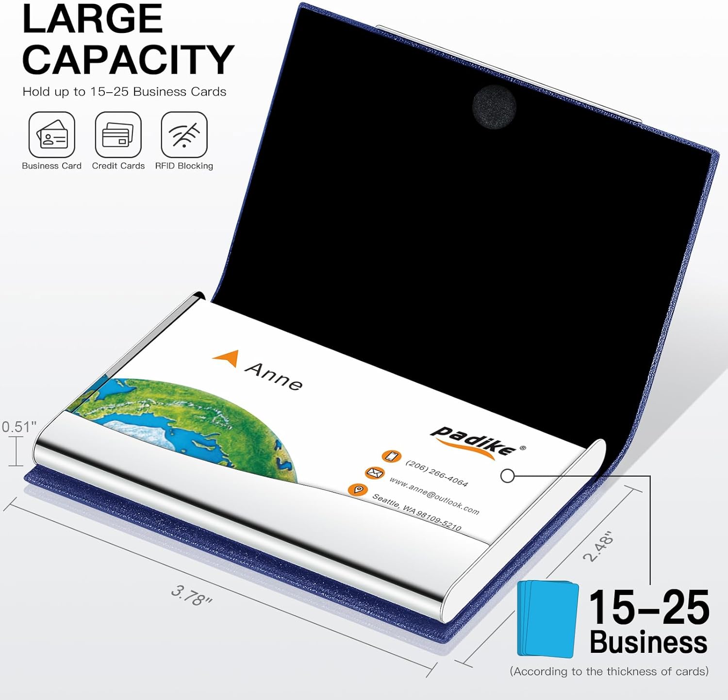 Padike Business Card Holder, Blue, Faux Leather, RFID Protected, Stylish Design
