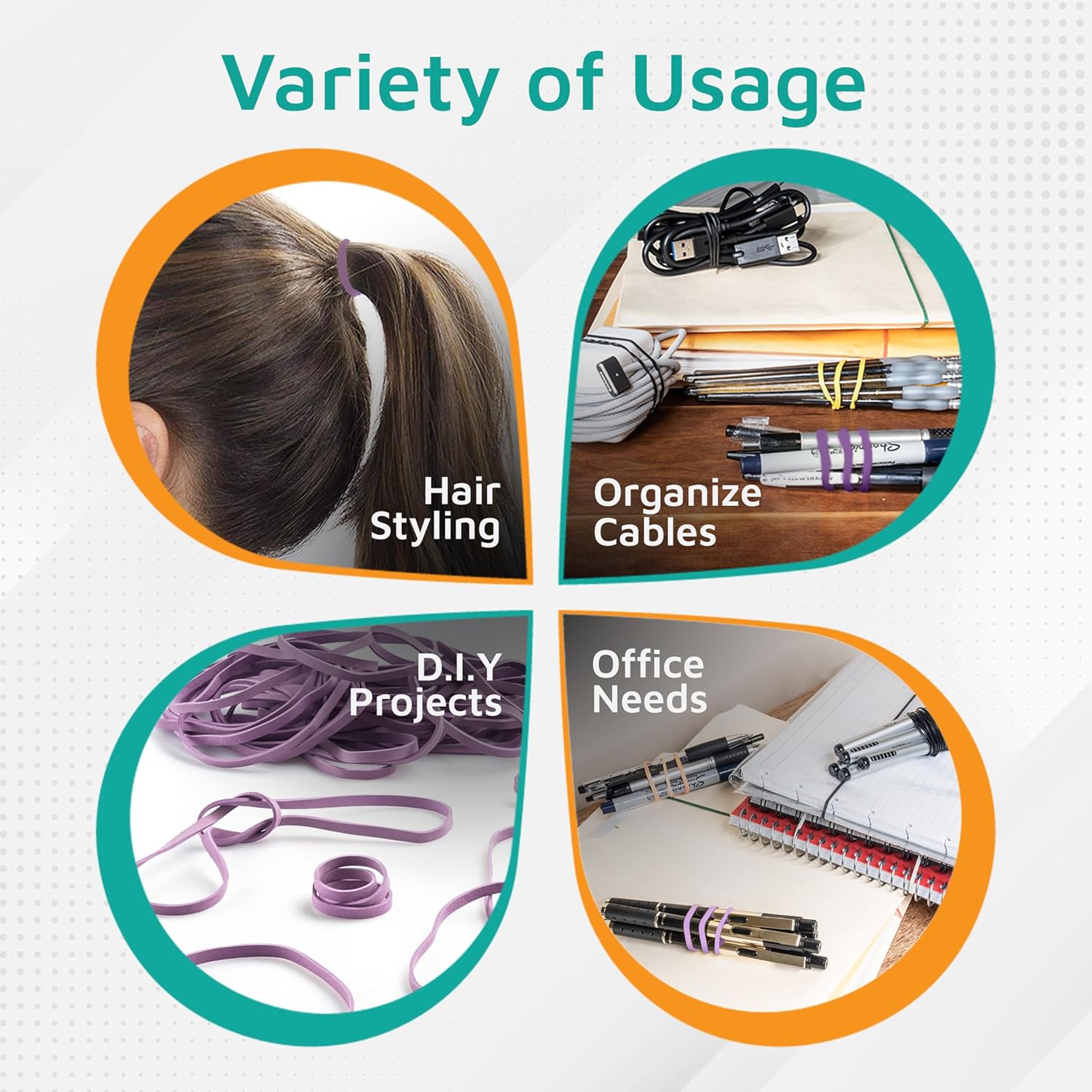 - Perfect for classroom: Ideal for classroom organization and storage. Great for all your needs: Whether you're a busy professional, student or industrial worker, these rubber bands are an excellent choice for organization, storage, and transportation.