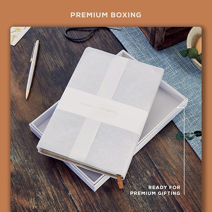 - Luxurious Writing Experience - Enjoy 160 pages of 120gsm ivory cream sheets that resist ink bleed and shading. Our journaling notebooks for meetings are perfect for creative writing without distractions.