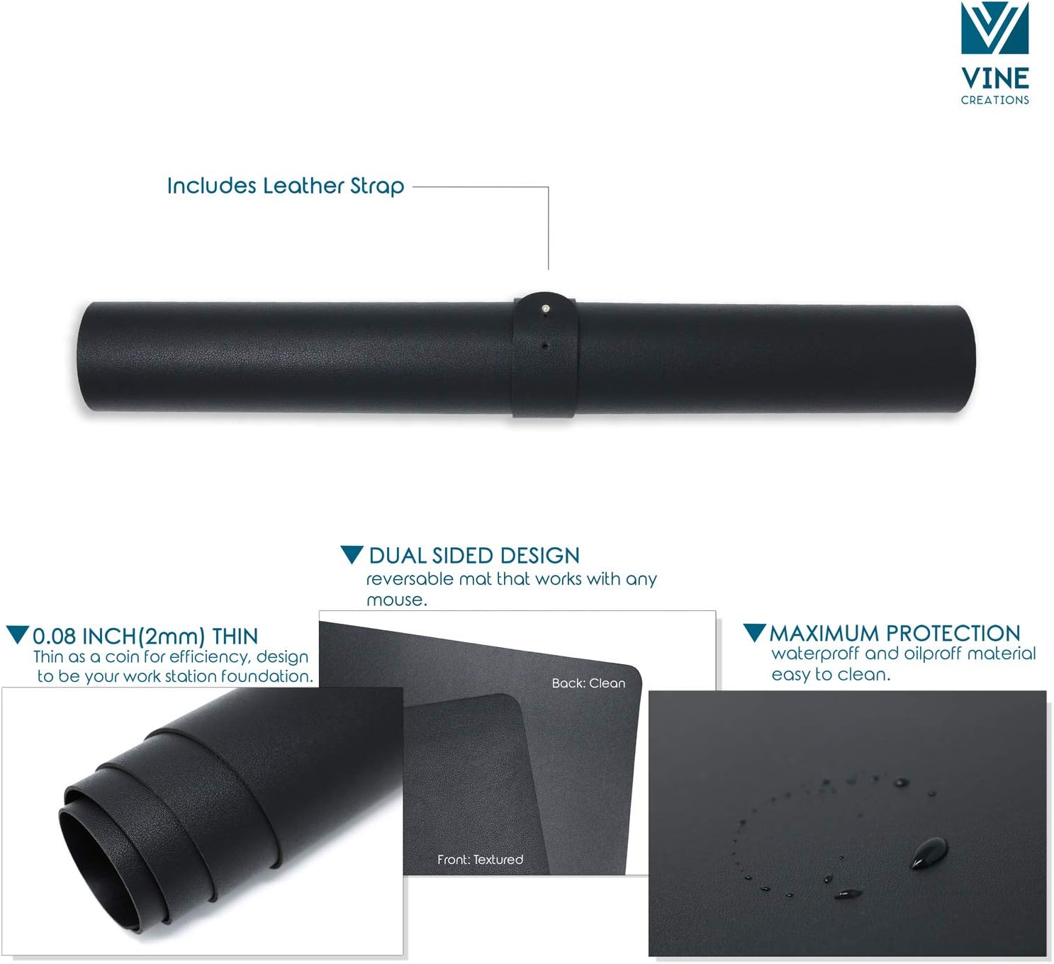 Vine Creations Leather Desk Mat 24" x 17", Desk Protector, PU Leather Desk Pad, Small Desk Pad Mat, Desk Blotter, Desk Pads on Top of Desks, Small Desk Mat for Home or Office (Black)