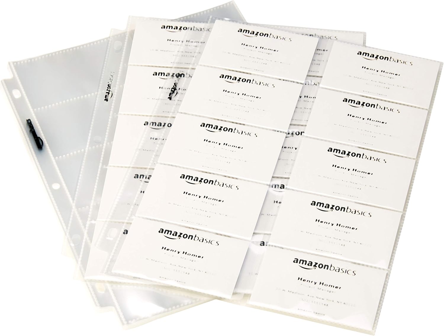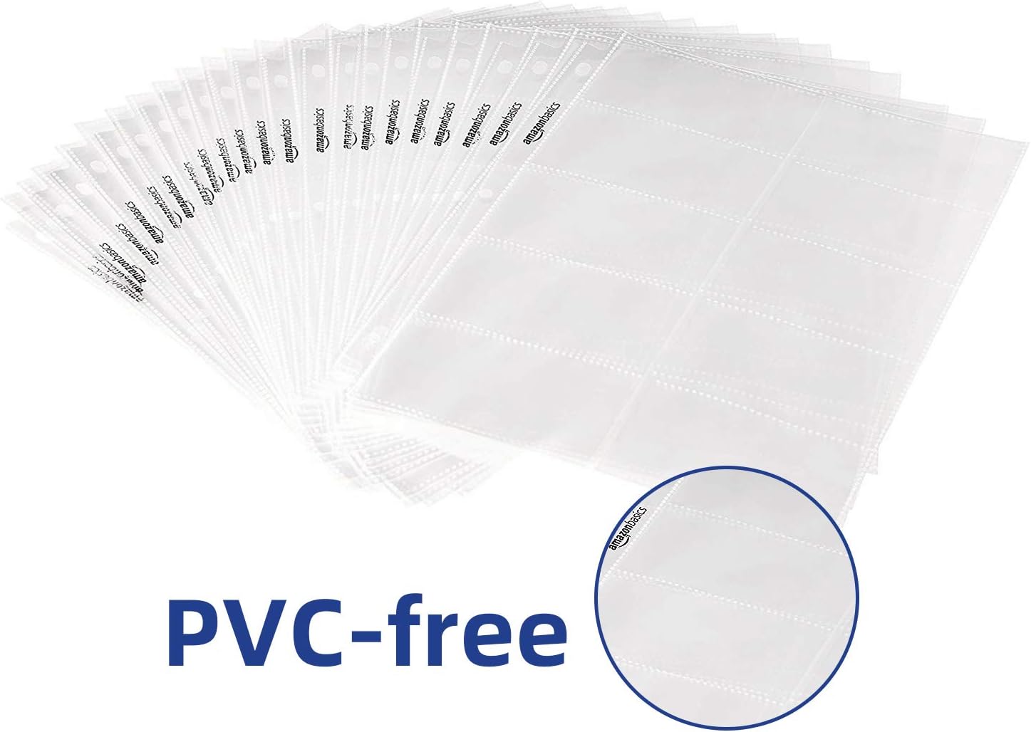 Amazon Basics Plastic Business Card Holder, Protector Sleeves for 3-Ring Binder, Transparent, 25-Pack