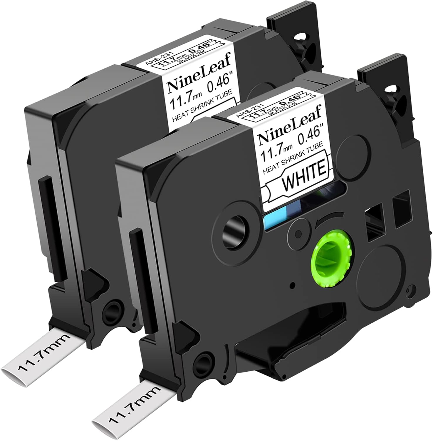 - NineLeaf 2 pack compatible for brother p-touch HSe231 HSe-231 HS-231 HS231 AHS-231 heat shrink labels.Size: 11.7 mm (0.46 inch) x 1.5 m(4.92ft), Color: Black on White. The size indication for this heat-shrink tube label is the width of the flattened tube as a label in a label printer.