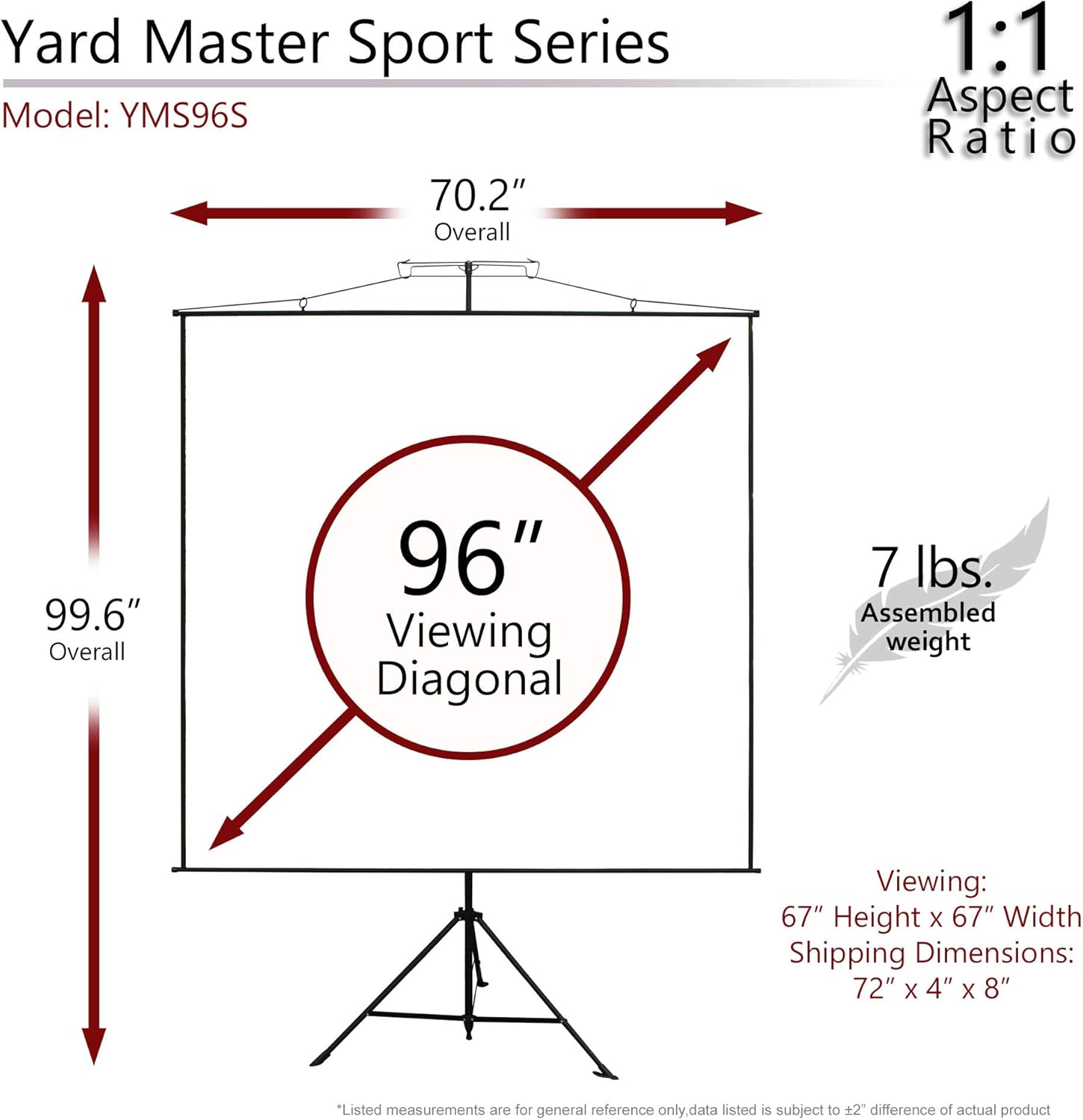 Elite Screens Yard Master Sport 96″ Portable Projector Screen, Dual Tripod/Wall Hanging 2-in-1, 1:1, MaxWhite Gain 1.1, Indoor/Outdoor with Carry Bag