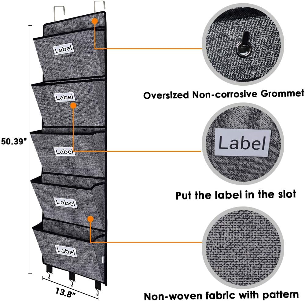 - [Heavy Duty and Well Made Quality] - This wall file organizer measures 13.8β wide and 50.39β long,made from two layers long-lasting fabric with thick card board inside, two non-corrosive grommets along the top for easy hanging