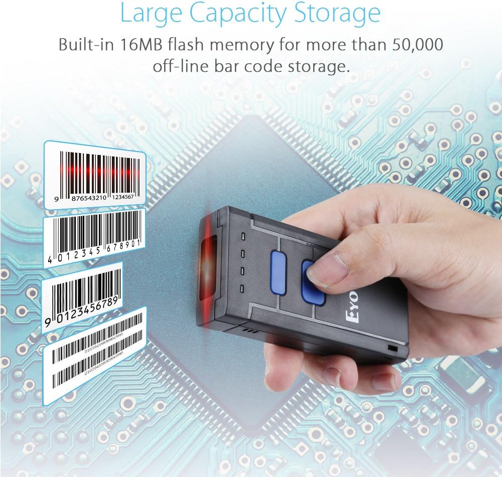 - Pocket Design, Compact & Convenient: The compact and lightweight Eyoyo portable barcode scanner easily fits in your pocket or bag. Whether in the office, warehouse, or outdoors, you can perform efficient scans anytime, anywhere. Whether conducting book inventory checks in the warehouse or quick checkouts in the retail store, this eyoyo scanner handles it all with ease