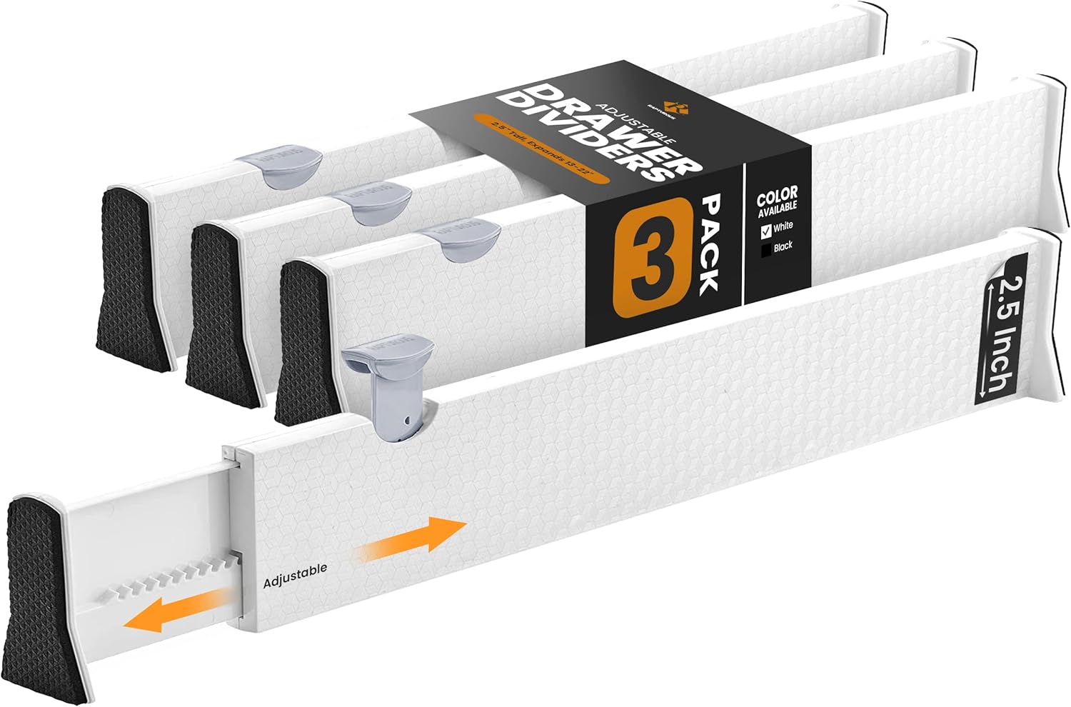 - Fits Most Drawers: Includes three 2.5-inch tall, expandable dividers that adjust from 13 to 22 inches, perfect for various drawer sizes.