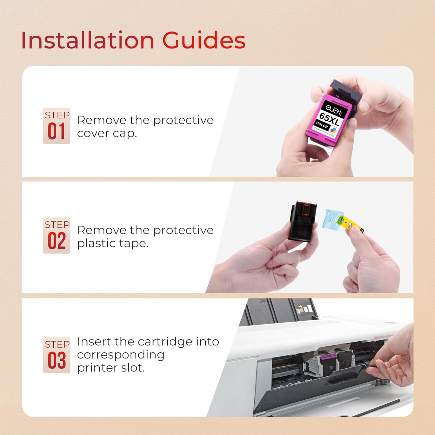 - Easy to install: ejet for HP 65xl ink cartridge combo pack are recycled from the OEM HP65 ink cartridges and tested strictly to ensure high compatibility with your printer along with easy installation.