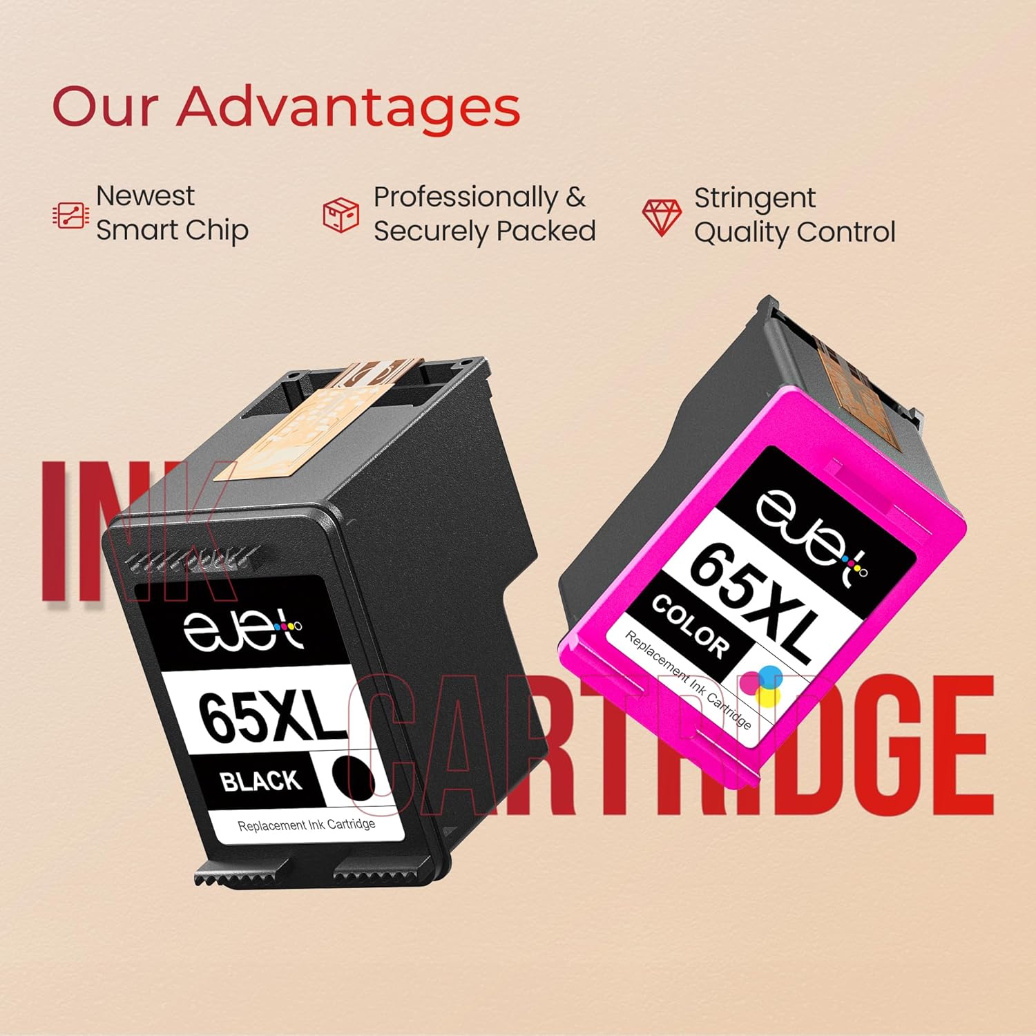 - Strict Quality Control: ejet for HP 65 ink cartridges black/color combo pack is made in an ISO 9001 and ISO 14001 certified facility, strictly tested with industry quality control processes to ensure high-quality printout and accurate ink level display.