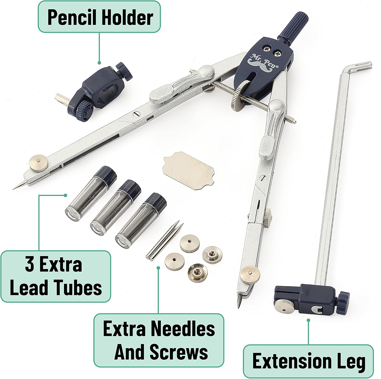 Mr. Pen- Professional Metal Compass with Wheel and Lock for Geometry, Compass Geometry Tool, Drawing Compass, Drafting Compass, Math Compass, Geometry Compass, Compass Drawing Tool, Compass Math