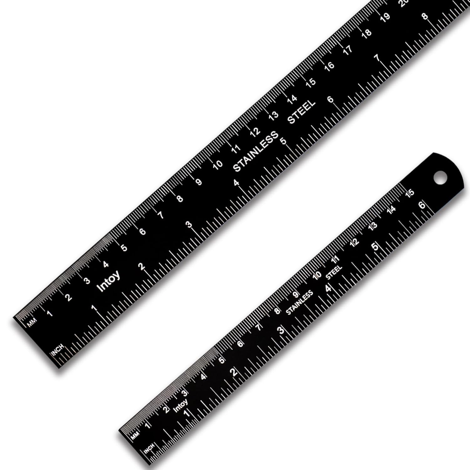 - Metric and Imperial Graduation: 1 PCS 12" (30 cm) and 1 PCS 6" (15 cm) stainless steel ruler, both with conversion tables (inch vs mm) on the back side
