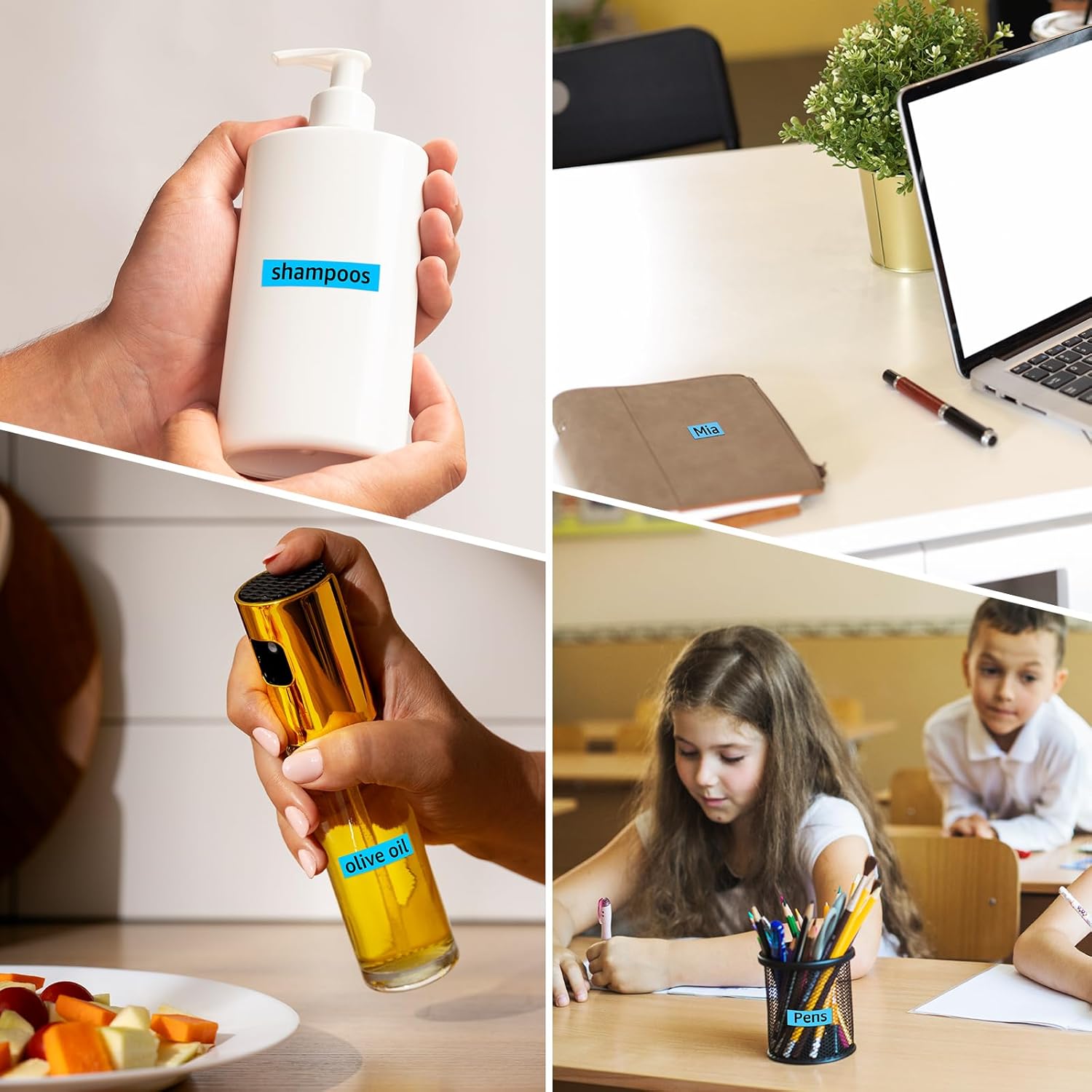 - Easy to install and use: ptouch m tape print crisp and bold text with those durable labels make identifying and labeling things easy and hassle free. The backing is split in two halves so is easy to peel and apply. Thermal labels: no ink or toner requiBlue!