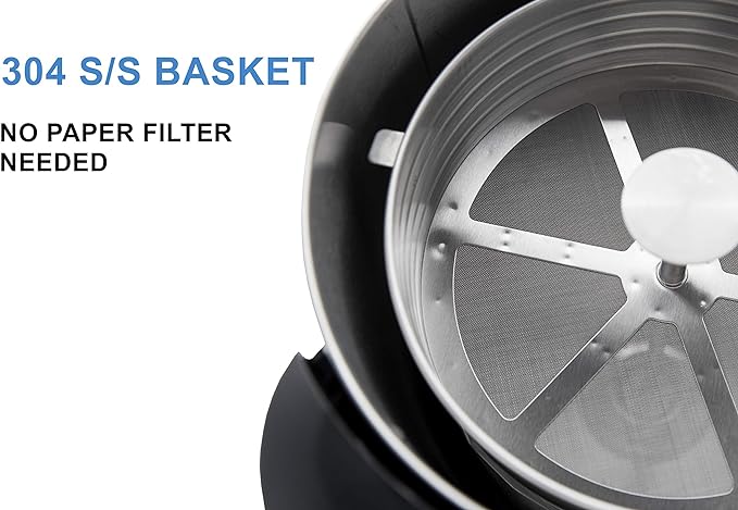 - NO PAPER FILTER NEEDED--304 stainless steel filter basket is durable and easy to clean, no paper filter needed.