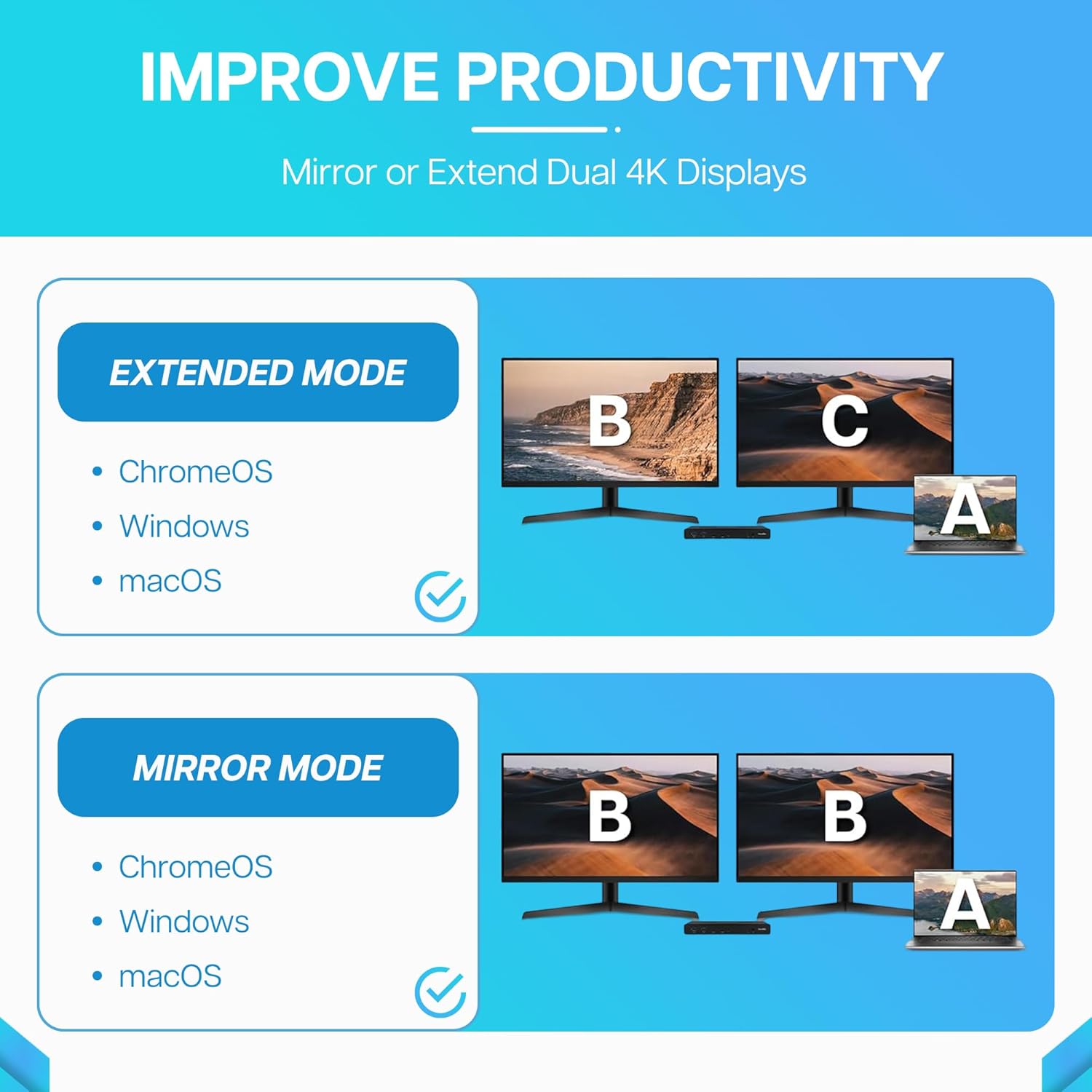 - Universal Docking Station Compatibility: Seamlessly compatible with all major brands, including Apple, Dell, Lenovo, ASUS, Microsoft, Acer, HP, Huawei, and for laptops like MacBook Air/Pro, Surface Pro, ThinkPad, ZenBook, Chromebook, MateBook, and beyond.