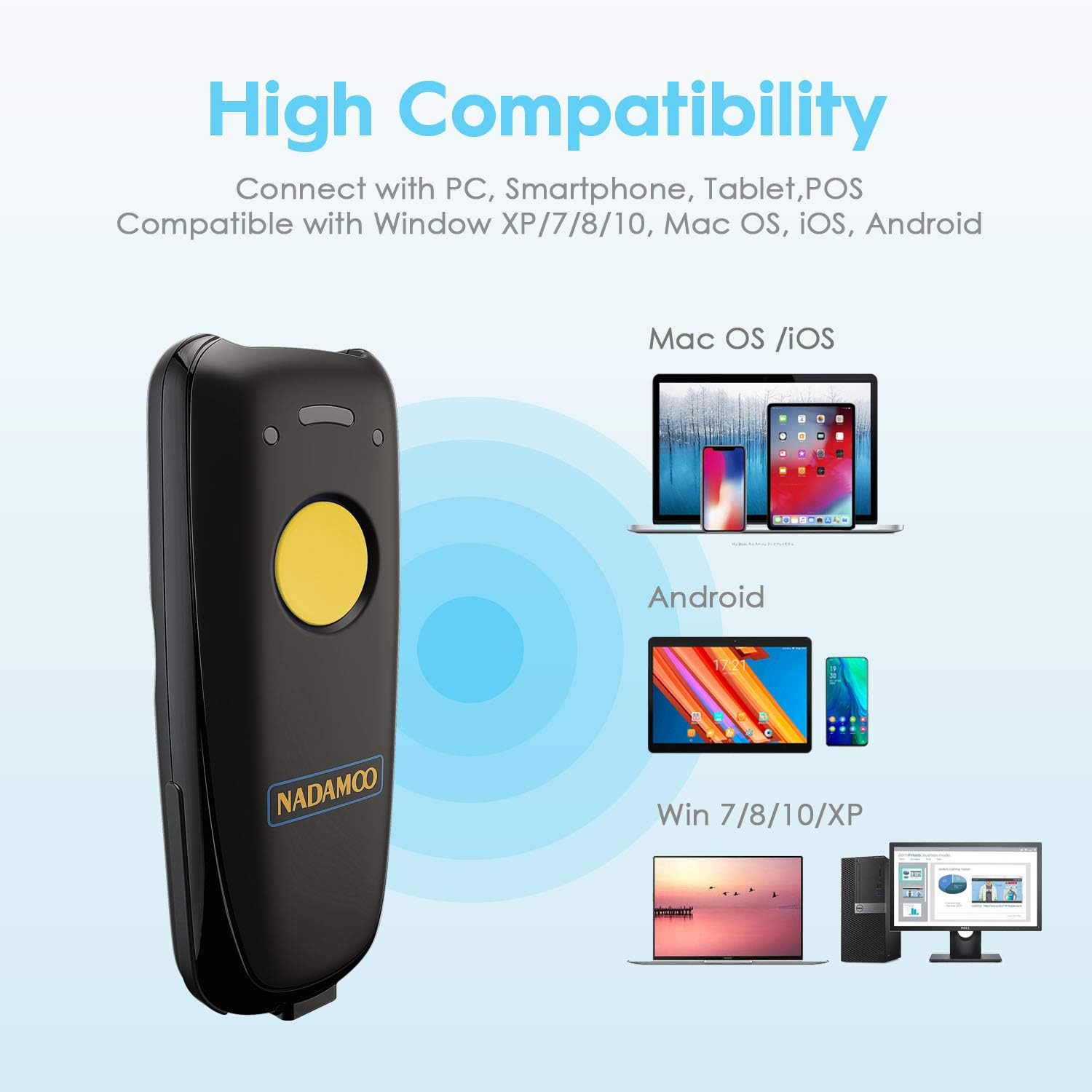 - The portable bar code scanner comes with 3-in-1 Connection DesignοΌCompatible with Blue Tooth Function; 2.4G Wireless connection with the Base receiver; Wired connection. Easily connected with your laptop, PC, mobile phone, tablet, iphone, ipad, POS. Work with Windows XP/7/8/10, Mac OS, Windows Mobile, Android OS, iOS