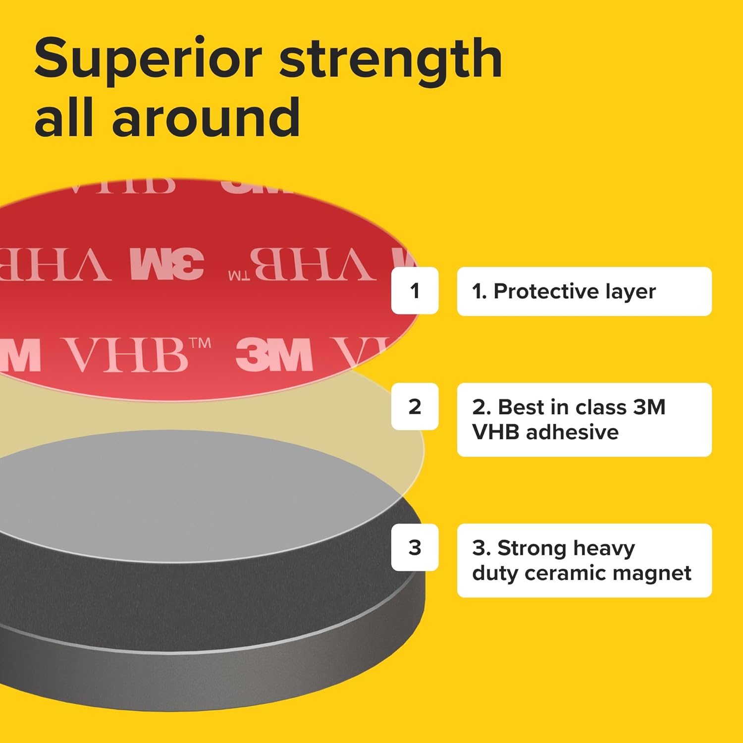 - 𝐏𝐑𝐄𝐌𝐈𝐔𝐌 𝐐𝐔𝐀𝐋𝐈𝐓𝐘 - ferrite magnets with durable adhesive backing! Large square/round magnets ready to be used for all your needs.